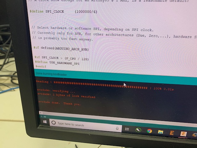 After everything was set, I opened Arduino and referenced the satshakit website in order to see the diagram below, which shows how I should wire everything up in order to burn the bootloader. Once everything was wired, I got clicked the burn bootloader button in Arduino and it worked!