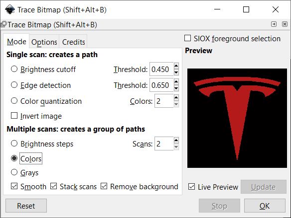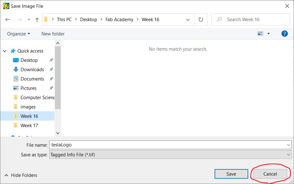 Now that I had a basic idea as to how the extension works, I needed to choose the design that I will make. I ended up picking the Tesla logo because I really like the brand and the products that they are making (they also have a really cool logo in general :) ). The first thing that I did was that I went to last year’s students’ work so that I could find the document settings they had. On Will Knight’s page, I was able to find that our machine had a size of 3.9in x 3.9 in. I set my document settings, and I was ready to go.