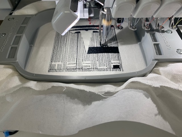 Down below is a picture of the stitching process, where the machine was going through the black parts of my design.