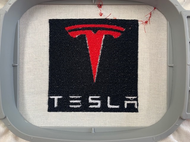 After about 10 minutes or so, my design was finally all stitched out, and the final product looks like this