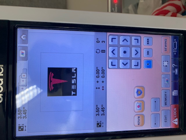 After I did this, I did not have to change any of the thread colors, so I pressed the red lock button on the bottom left of the screen, and then I pressed the physical button below that which is red in the photo above in order to start stitching.