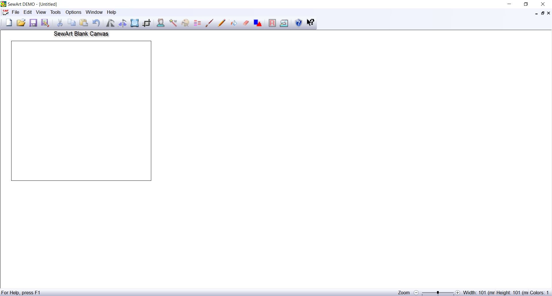 Once I was back at my computer, I looked up SewArt, and found that it costs money, so I downloaded a free trial and decided to make my design. Since I already had a .svg saved of the logo I wanted from InkScape, I imported that into SewArt. The blank canvas of SewArt looks like this: