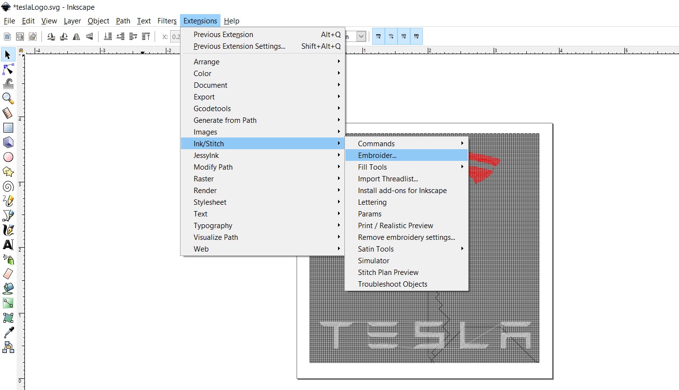 The first thing that I had to do was download InkSketch. InkSketch is an Inkscape extension that allows users to make designs that can be made on an Embroidery machine. The download process seems a bit confusing in the beginning, but this tutorial on the website helps guide you through the installation process for your specific OS. Since I am on a Windows machine, I will follow the windows tutorial. After following the tutorial, you should have everything set to go.