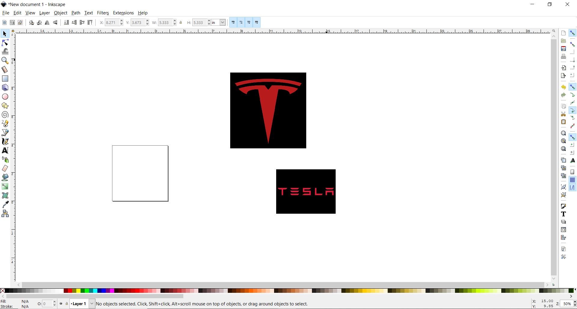The first thing that I did was that I went on the internet to find the Tesla logo so that I could take it into my Inkscape page. I found two images, with one being the actual logo, and the other being the actual words tesla. I got the two images into my document which looked like this.