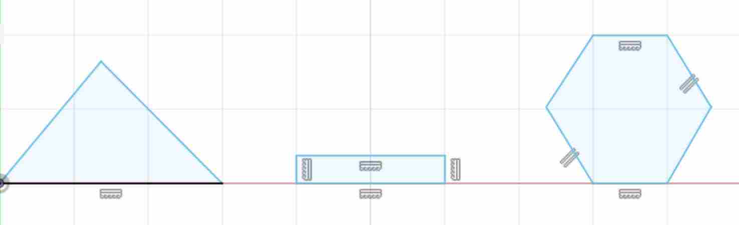 I then created a few more constraints to make the tabs be the same length/width, and have the sides of the triangle and hexagon be the same.