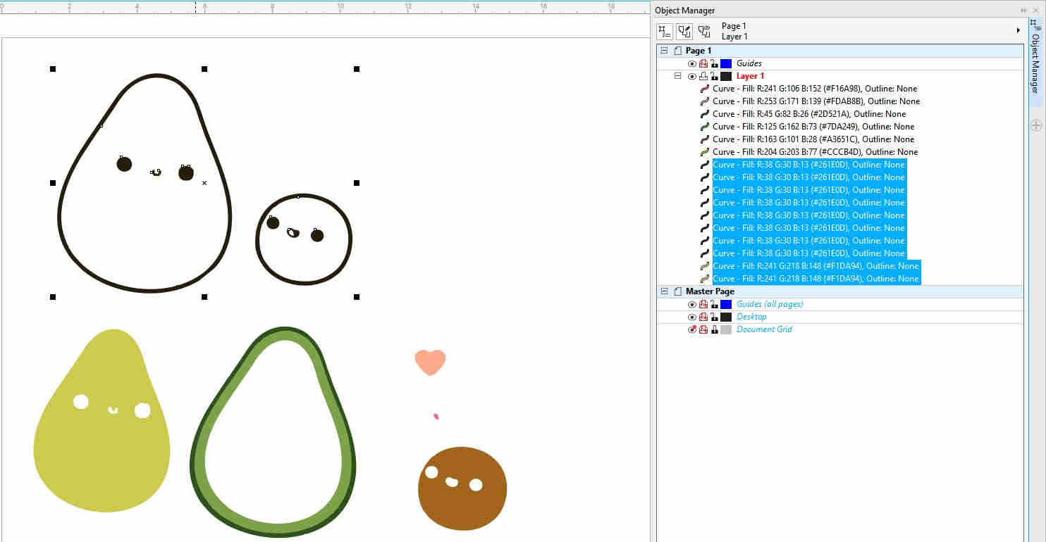 I deleted the original image and arranged the objects on my page. I kept all the different colors with each other so I could cut multiple parts in one go. The board the stickers go on has a grid, so it was easy to line up with what I put on the computer. I was afraid it would mess up though, so I had to be super careful.