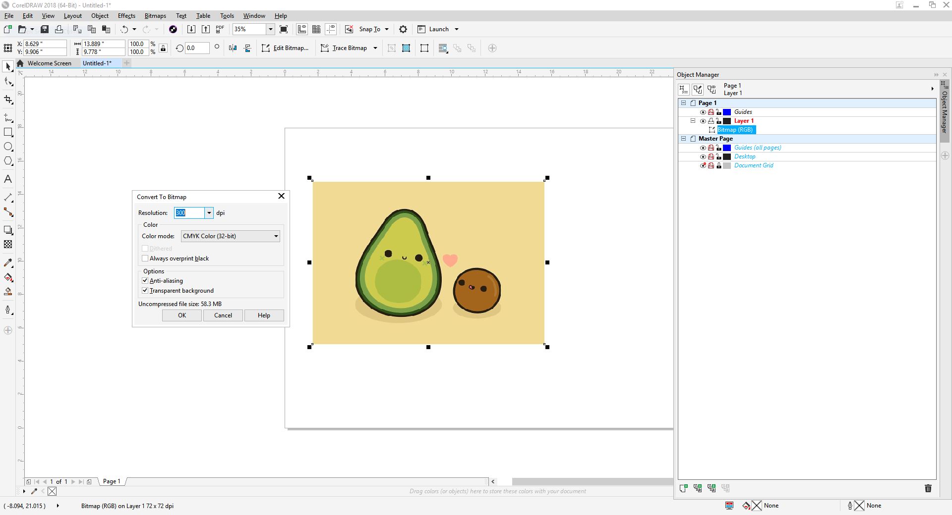I imported into corel draw and took a minute to click around the menus. This wasn’t the first time I had used Corel but most of what I had done was very basic. I didn’t know how to trace things.