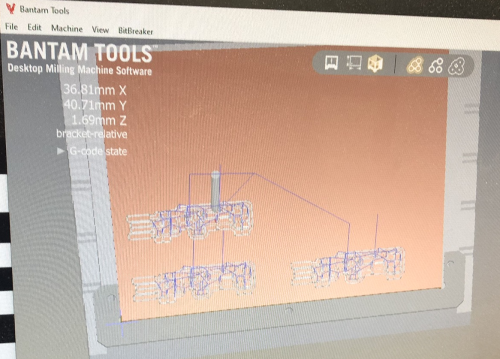 After this you change the bit of the machine and adjust the settings so the machine knows what bit you are using. We also had to home the machine in the x y and z axis, so the machine knew where it was, however the g-code incorporated the dimensions of the board and most of the settings so we were able to upload our files and mill the board without doing much else in between.