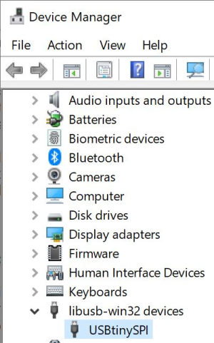 That’s it! I plugged the USB into my computer and navigated into devices on the control panel so I could see if my computer recognized the board as a USBTIny, and it did.
