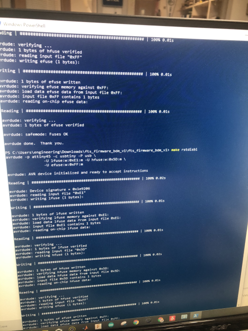 While in that directory, I ran the following commands. 1. make all 2. make flash 3. make fuses 4. make rstdisbl