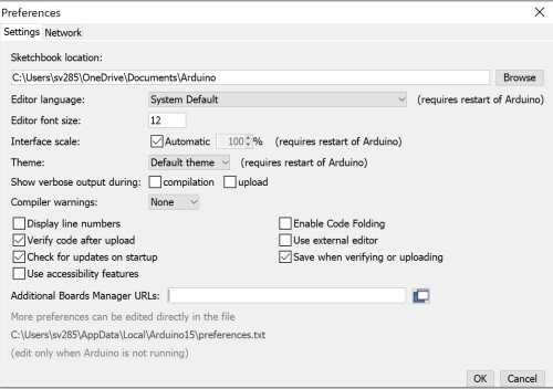 I uploaded the board manager code to Arduino through Arduino IDE. I followed the steps on the github repository with the ATTInyCore Code. I had to go to File -> Preferences and copy the board manager url to the “Additional Boards Manager URL” field. To open it, I think navigated through Tools -> Boards -> Board Manager, then