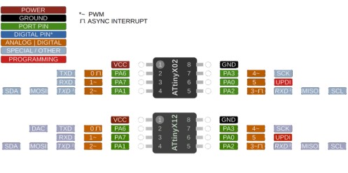 Here is an oversimplified description of my parts: The Attiny412 is a microcontroller with 6 pins as below: