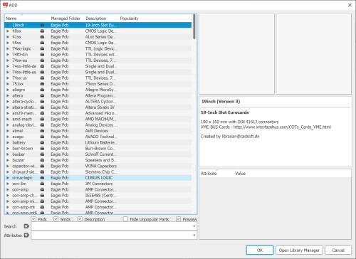 Back in Eagle, I selected the libraries from the control panel so they would have the “green dot” next to them meaning they were in use. To take parts from these libraries, I navigated back into my schematic screen and in the Search Bar typed the command Add. There is also a toolbar with this command as a button.