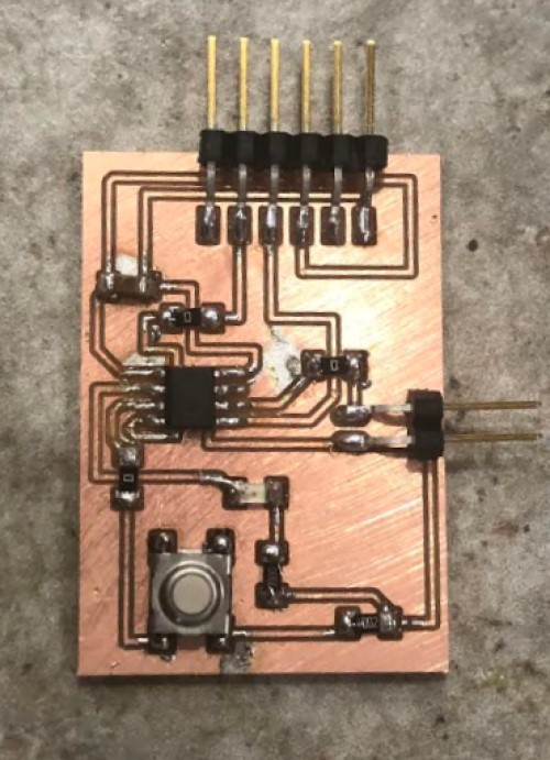 I actually ended up making two boards this week, because my first board had a lot of issues that would have made it unprogrammable. Unfortunately, I only discovered it was unprogrammable when I went to program it and one of my teachers saw it and said “hey, you do know you did this is all wrong, right?” So I included the information from my first board to give a better sense of my learning process with these boards.