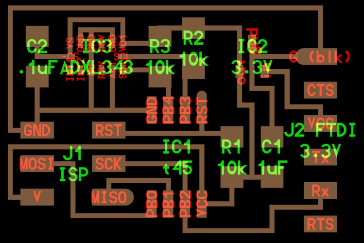 The adxl343 is the traditional chip people use when doing this week, and unfortunately it took a while to arrive for our lab, but I got it by networking and communications week. I documented my work in making the board here, but my work in programming is on this site.