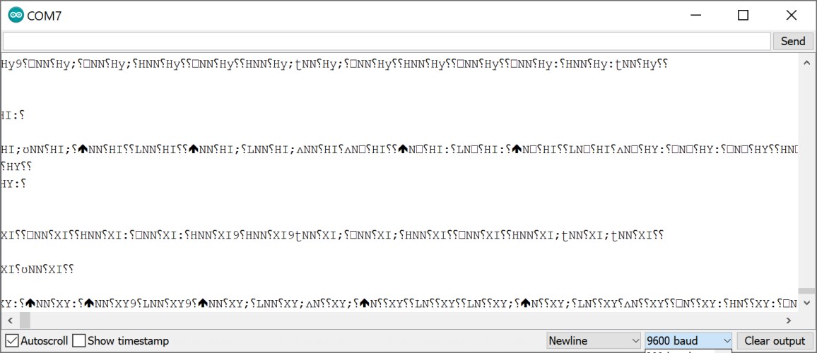 I compiled and uploaded it without running into any issues. However, when I opened the serial monitor all that displayed was never-ending question marks.