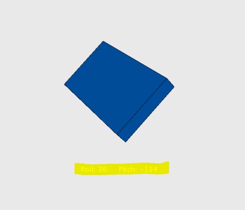 (Processing doesn’t show most of the data, but it does display the pitch and roll of the object. You can see that it reached the position I had moved it to in the video, but this photo was taken a significant number of seconds later.