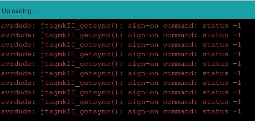 I tried uploading this sketch with the arduino jtag2updi protocol, however I couldn’t get it to upload. It kept sending this message and would hang.