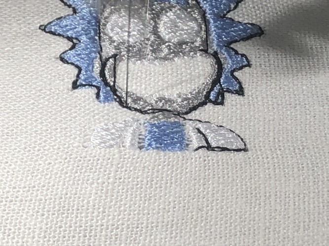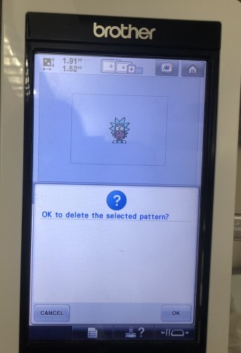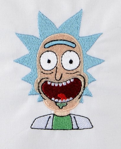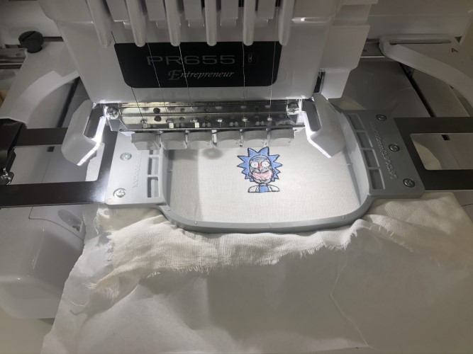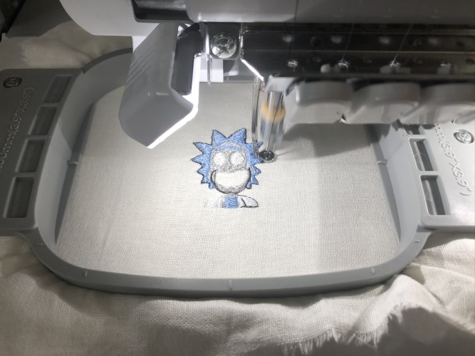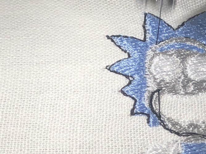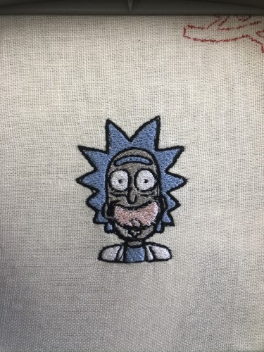 The machine was set at 600 stitches per minute, so in no time I had my embroidered patch of Rick Sanchez.