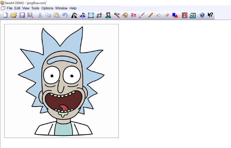 .pes of Rick Sanchez head, stitch interrupted between each shape