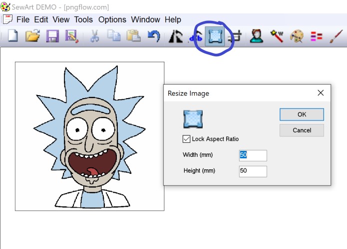 I then resized the image using the Resize tool in the top bar to about 2 x 2inches (50 x 50 mm).
