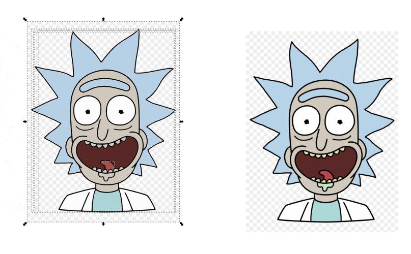 While using the method described above, I realized that this was not really the ideal way to do this. Because some of the layers colors are a completely attached silhouette of Rick, deleting Nodes only made really weird looking files with lots of colors everywhere. In order to get my desired result, I needed to add/move nodes manually. This was a very large task, so I started looking for alternatives.