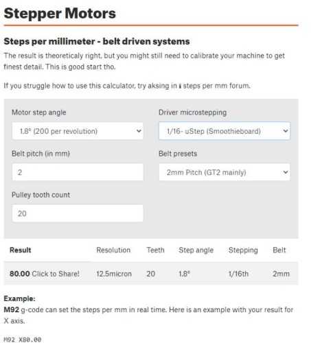 Most of the information we needed was on the component’s datasheet. The microstepping value was 1/16th, because this is what we had set it as earlier by connecting the M0 M1 and M2 pins.