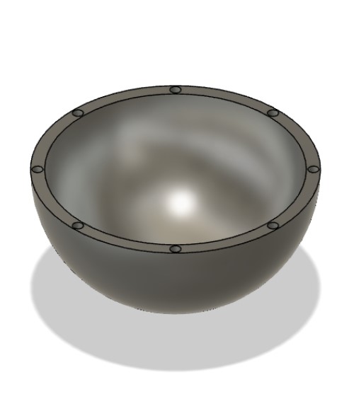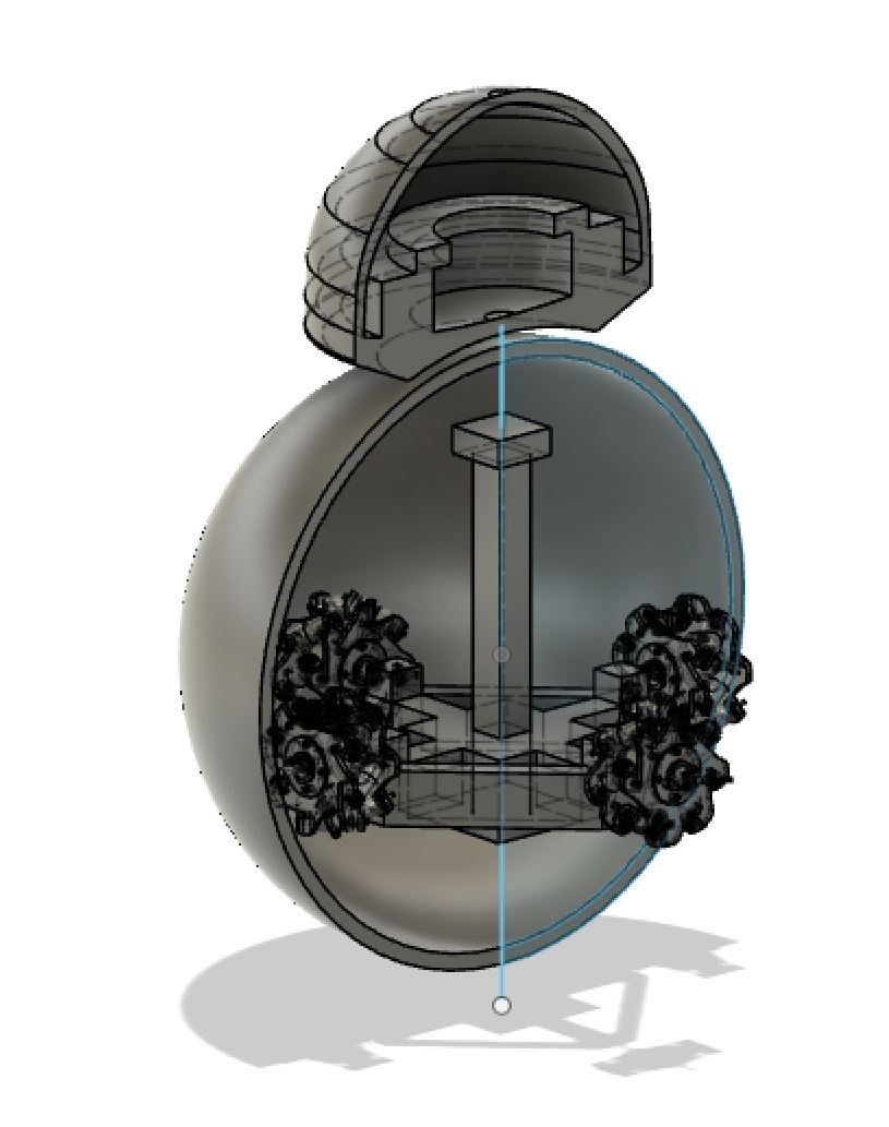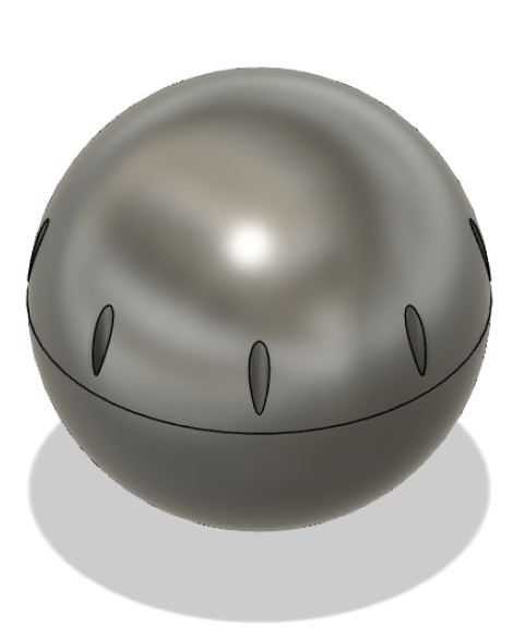 The first file (the first two images) has no visible way of seperating and connecting the “shell” / outside sphere. So, I tried to make the shell so that there were two halves, and I could screw them together using threads. I got the inspiration for this from fab alumn Pietro Rustici’s final projet, a rolling ball called palla (a former fab student). He made a rolling ball robot. A key difference is that I tried to cover the sports where the threaded inserts would be by increasing the thickness of the shell. I had to do this because there will be a drivetrain rolling around the inside of the shell like a hamster. If it rolled over threads it might not move very smoothly.