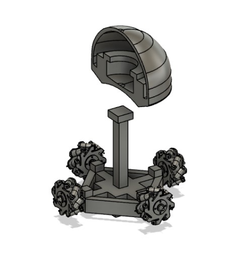 The goal of this robot is to have a holonomic (capable of moving in any direction) robot. To do this, I am planning on making a drivetrain that rolls around inside the shell like a hamster moving in a wheel.