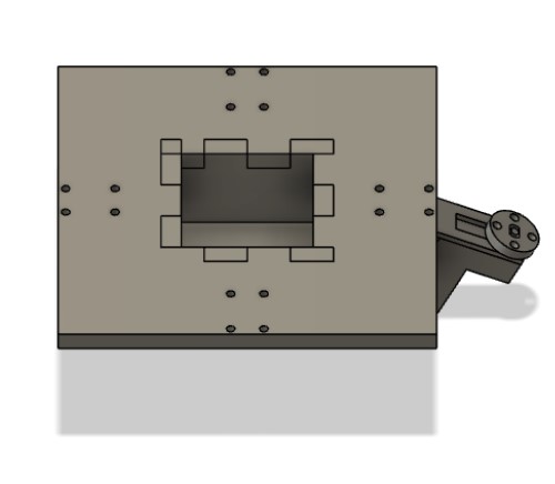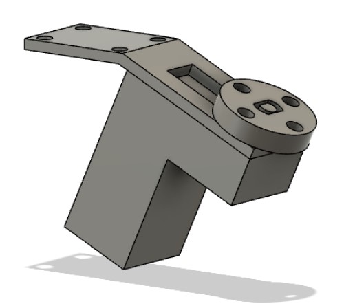 There are little 3d printed components that are screwed into the main structure of wood. I measured the gearbox motors and designed the 3d printed parts to fit around them and have a spot to screw them together. I also designed a little connector plate that fit into the gearbox motor axil, and tried to design it so that they would have holes that aligned with the wheels. I was able to make a connector plate that fit into the axil of the motor. It has a really tight fit, but one of them kept popping out of the axel, so I hot glued it onto the axel. The connector plate also has holes in it that align to the holes in the wheels, so I screwed them together.