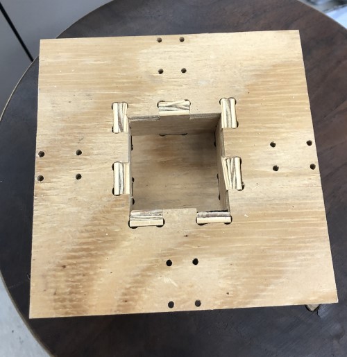 2) I also had to finish Packaging the Product. The wires are not hidden on the project. I intended for the shell to cover them, but as mentioned, the shell did not work. So, here is a laser cut box that I made to fit snugly around the base, as well as the file.