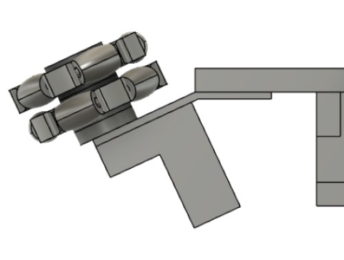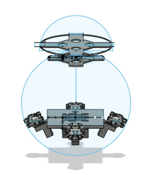 So, I switched gears to making the omnidirectional robot that functions on it’s own. My biggest issue was that I had desined the wheels to be at a 45 degree angle, and because the CNC base has a “pocket” at the bottom, the wheels don’t touch the ground. I knew I did not have time to reprint and sand all 4 wheels- especially if one messed up. Fortunately, I did have a back up plan. I knew we had some omni wheels in a bin in the back of the room. I was planning on using those IF and ONLY IF my wheels did not work. So I used those. However, I still had to redesign connectors that would connect to the new omni wheels, and make the wheels touch the ground at a 90 degree angle, not at a 45 degree one.
