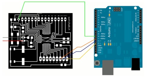 I also needed to add a bluetooth module to the board. This will trasmit the “input” data from the processing app to the satshakit and the motors, so the processing app can control the motors.