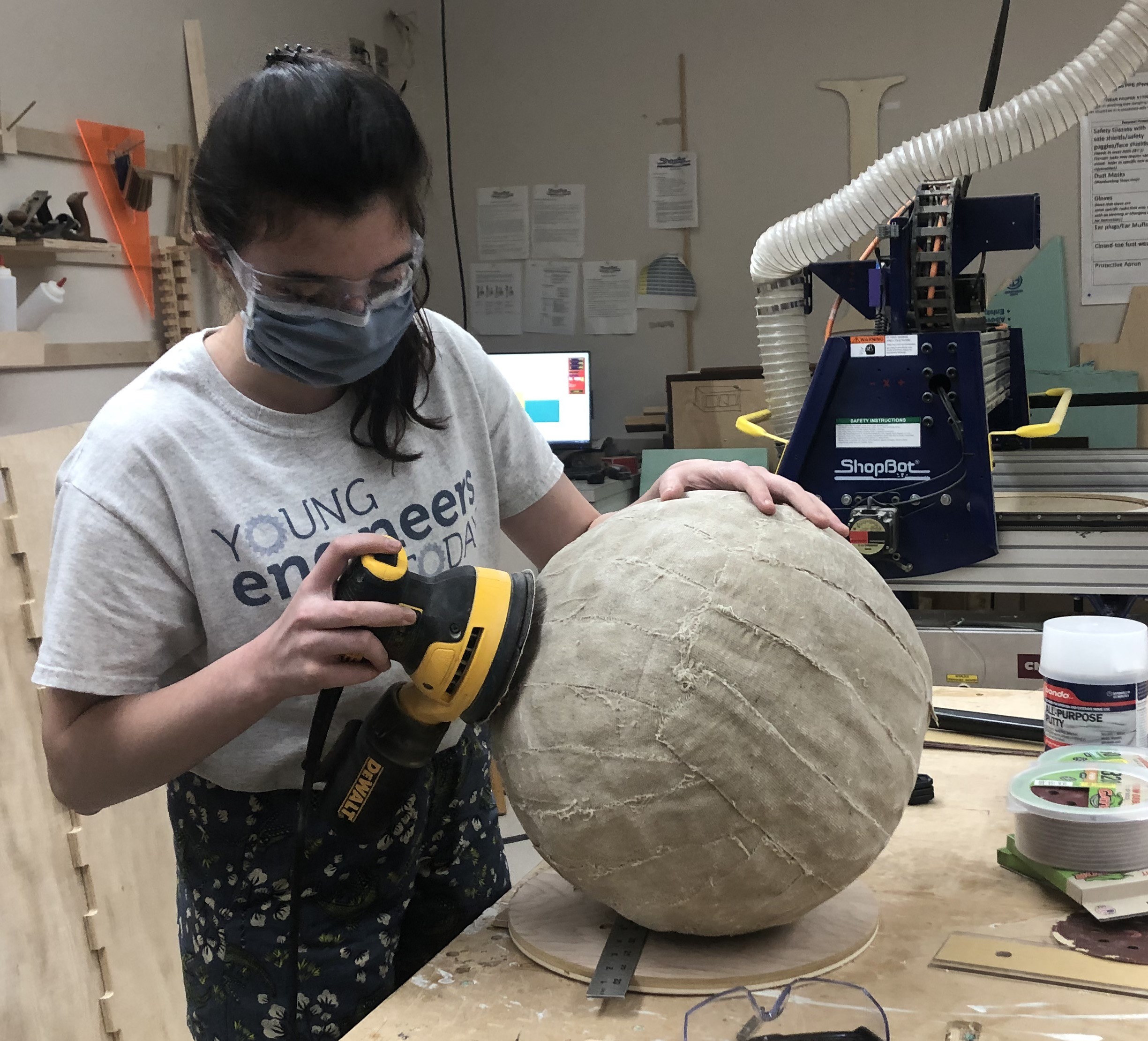 However, the 3d print failed. It was a lot of material and my tecahers and I were not so sure the 3d printer would be able to print such a large file. I spent a little while trouble shooting with my teachers and trying to figure out a work around, but we weren’t confidant we could find one, so I moved on to trying to make the shell another way.
