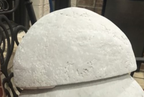 Anyways, it dried really quickly and I ended up with a finish that was not particularly smooth. I tried to practice on some random material first, but I really wasn’t applying the bondo well until I was almost done covering the shell (and the dome/ the head of bb8, which I covered in bondo so the texture of the shell and the dome would be uniform).