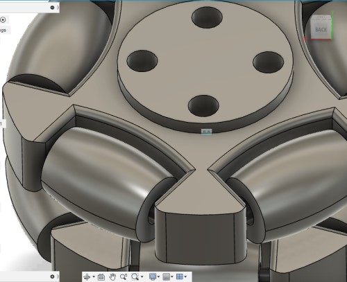 The wheels are omnidirectional wheels, which means they can move roll like normal wheels, and the rollers allow them to also move perpendicular to the direction wheels normally move. I followed this tutorial on youtube to create the wheels. I modified it slightly, so that there would be more rollers. I was afraid that in the original design that the space between the rollers might just catch and drag on the inside of the spehre, so I made the space in between rollers smaller. There is also a significant amount of space in between the inside of the roller and the “axel” in the center of it that held it up. I am afriad that when the roller is placed against the inside of the shell it will be pushed back so far that the actual roller part doesnt tuch msot of the shell, and it drags. So, I made the radius of the roller a little bigger.