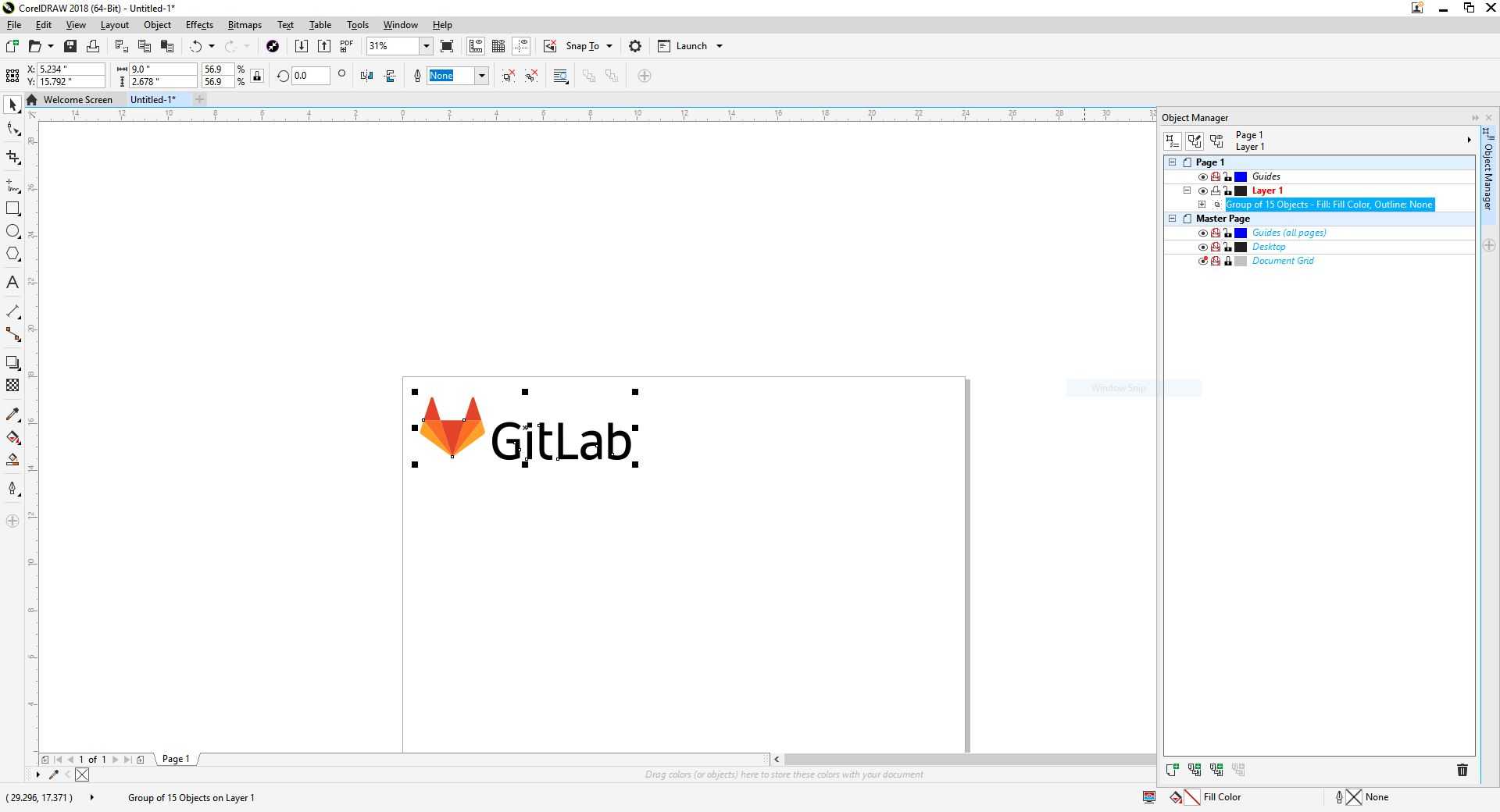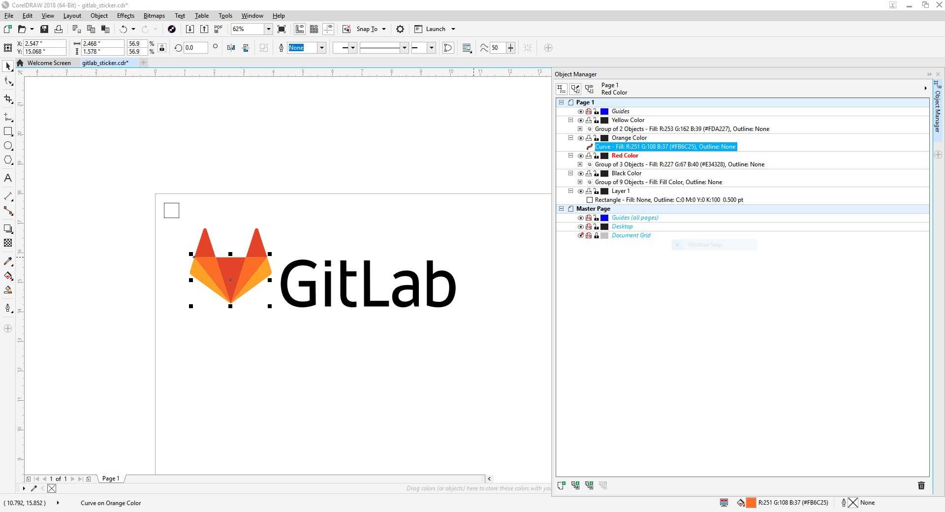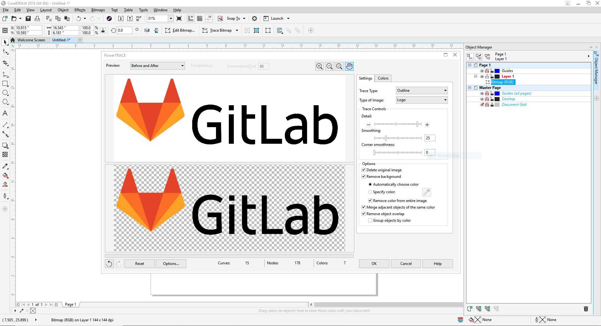 After obtaining a high resolution picture of the GitLab logo, I imported the picture into CorelDraw and traced the bitmap.