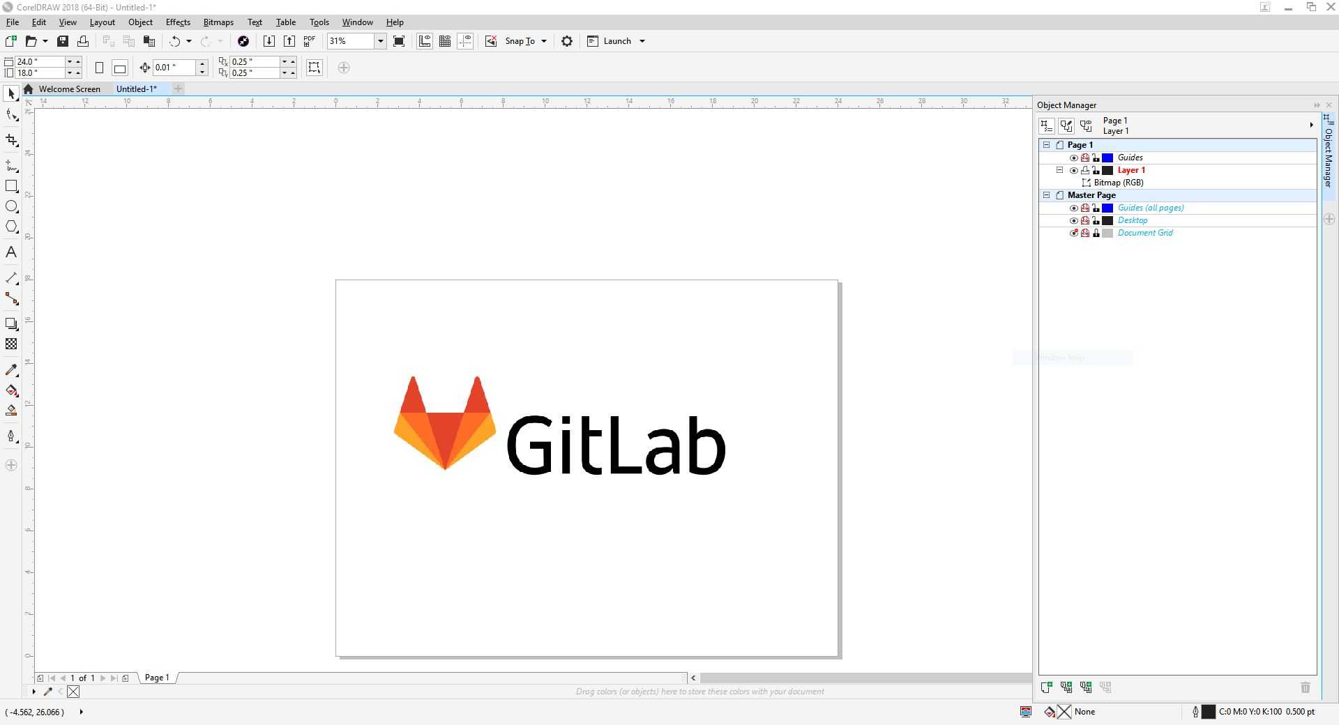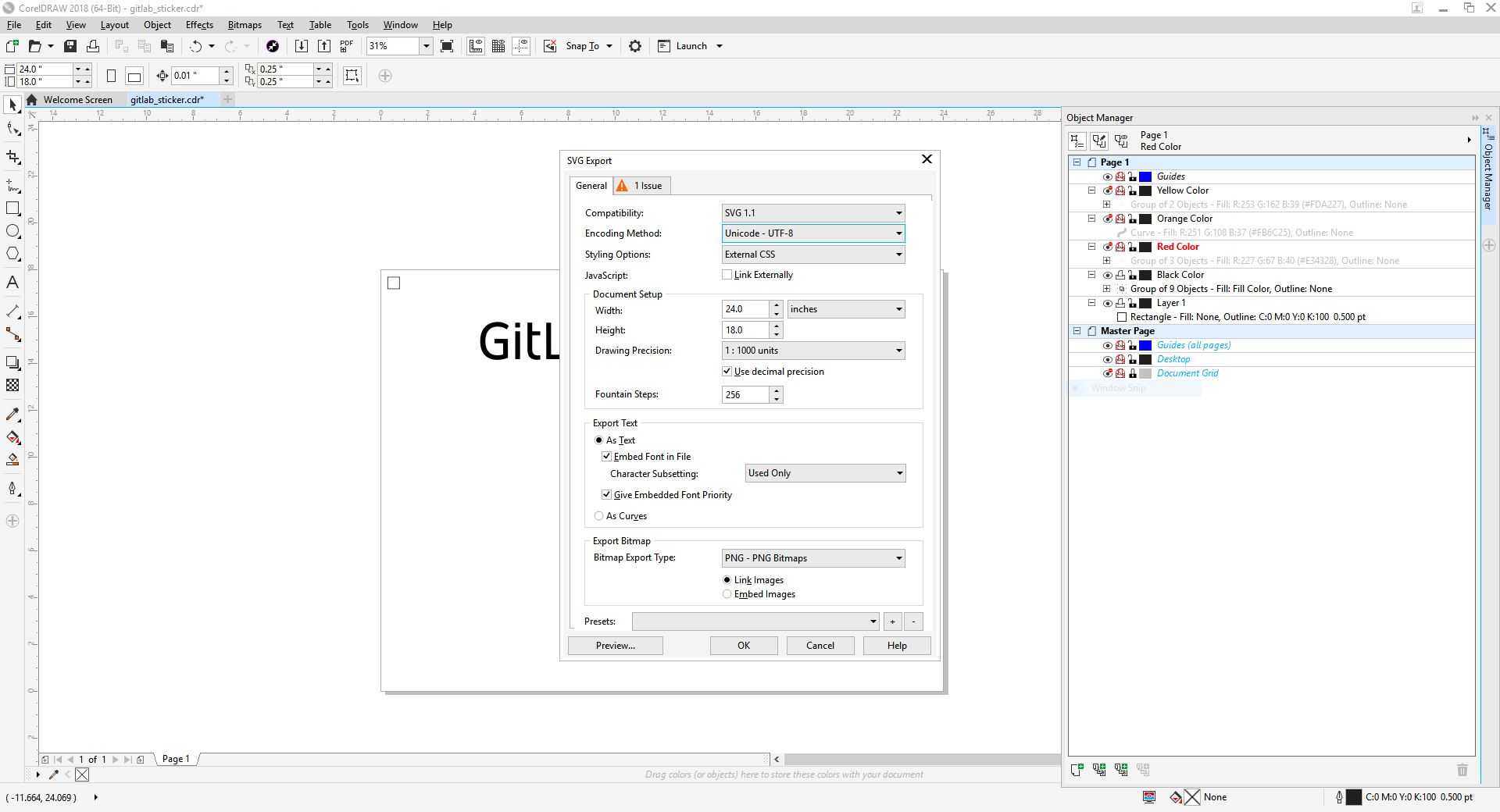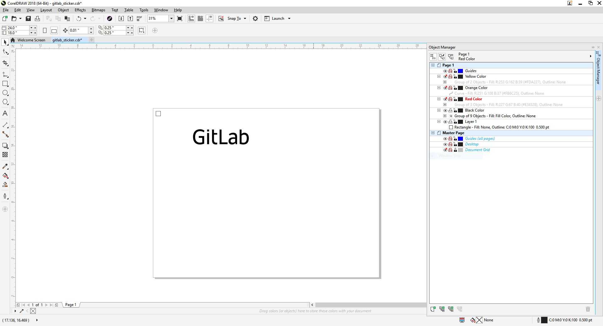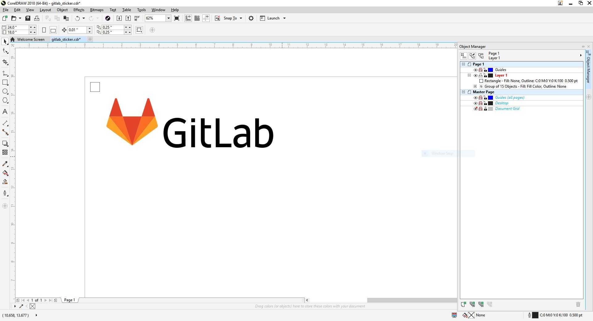 After obtaining a high resolution picture of the GitLab logo, I imported the picture into CorelDraw and traced the bitmap.