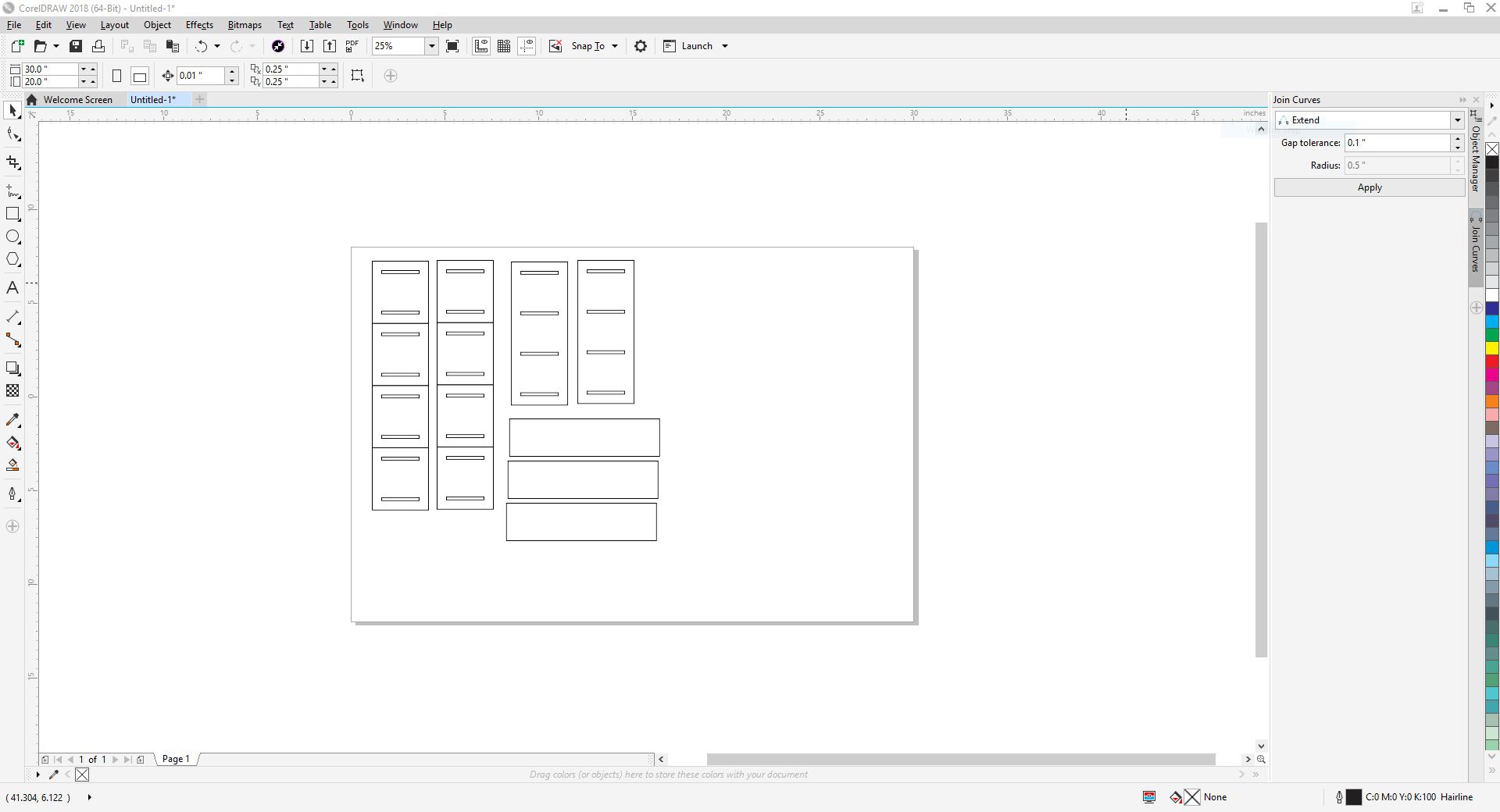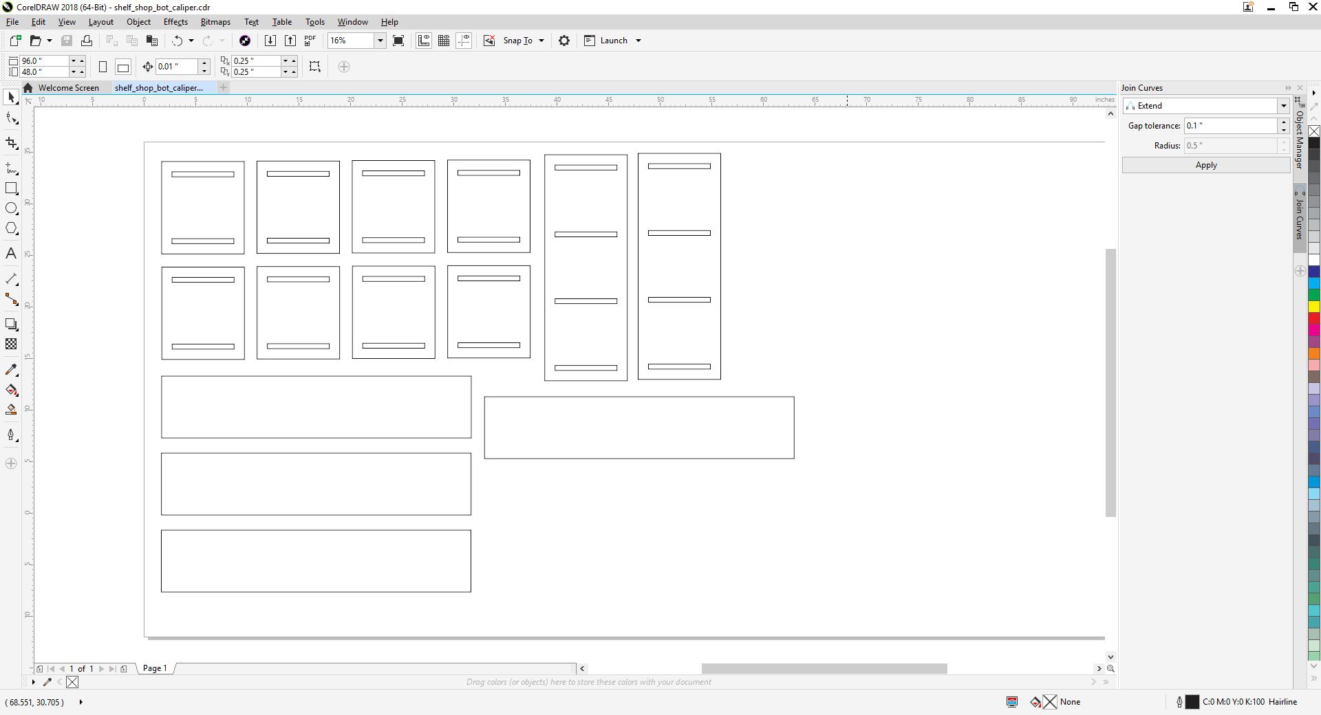 To prepare the sketch, I imported the DXF files into CorelDraw and duplicated the pieces enough to make the full assembly. I exported each file as an SVG.