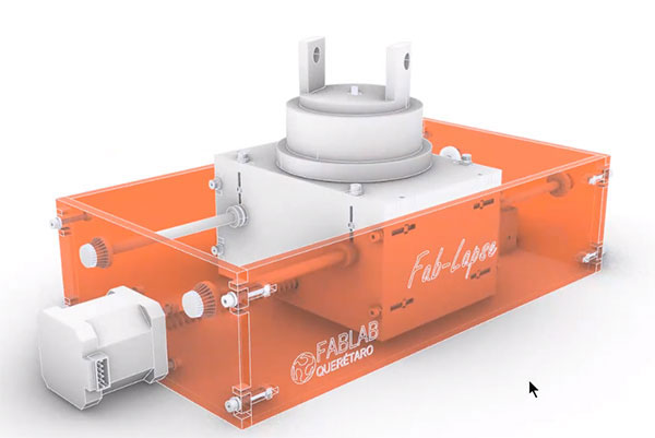 In this case, we as Ciudad de México FabLab, as a team, decided to try designing a time lapse rail for a Smart phone, whether is an iPhone or Android, and integrate a myriad of printed, cutted and existent pieces.