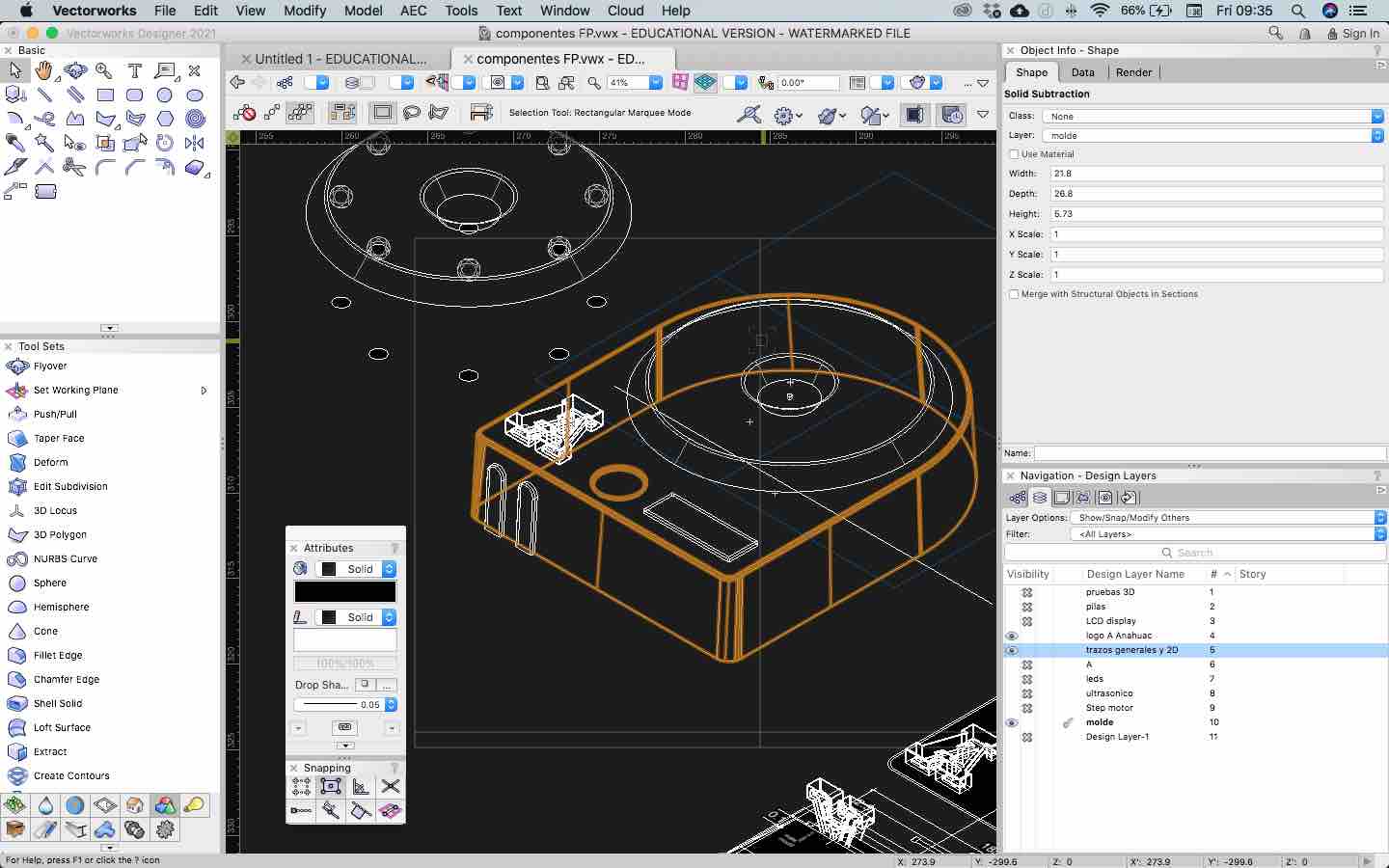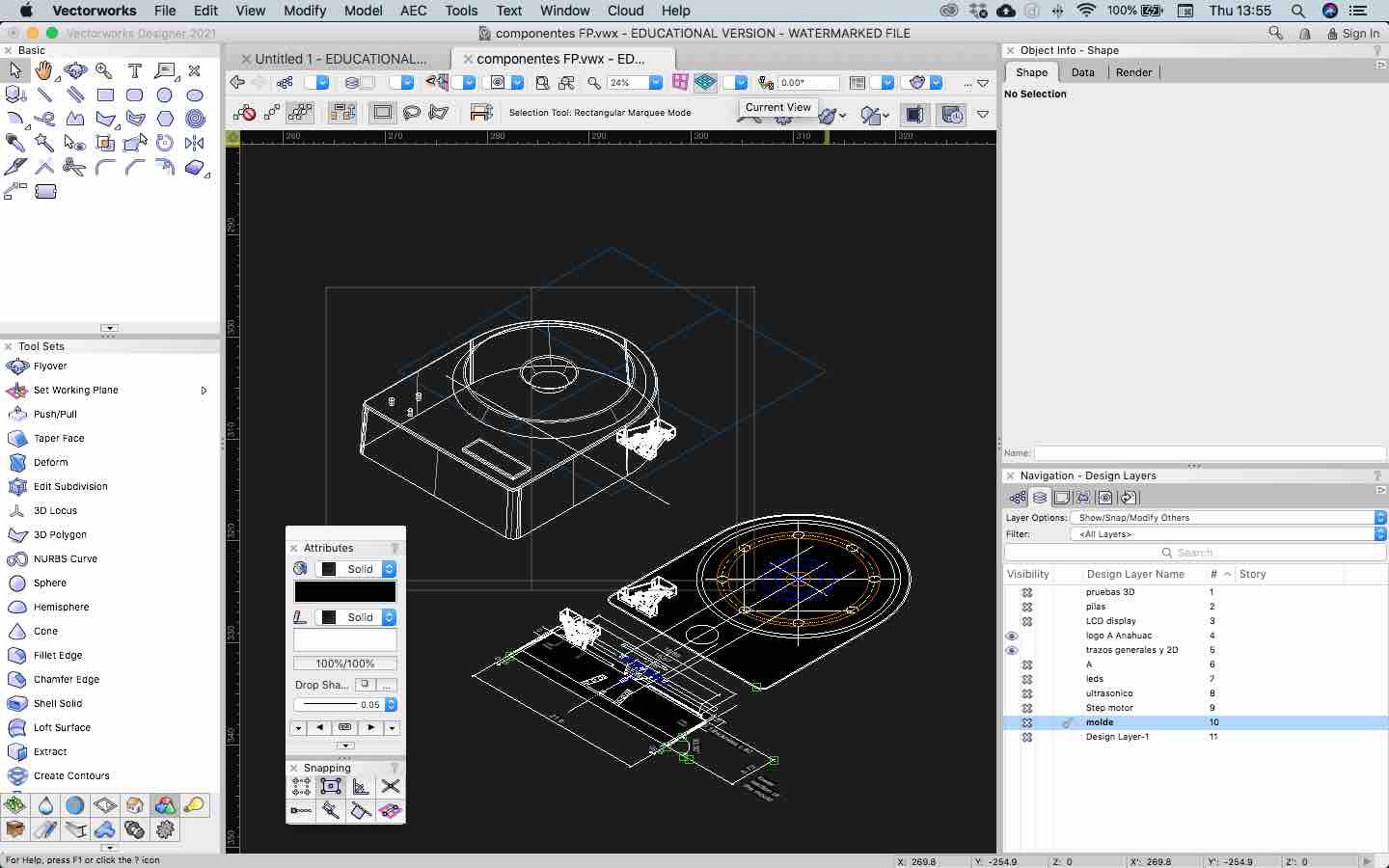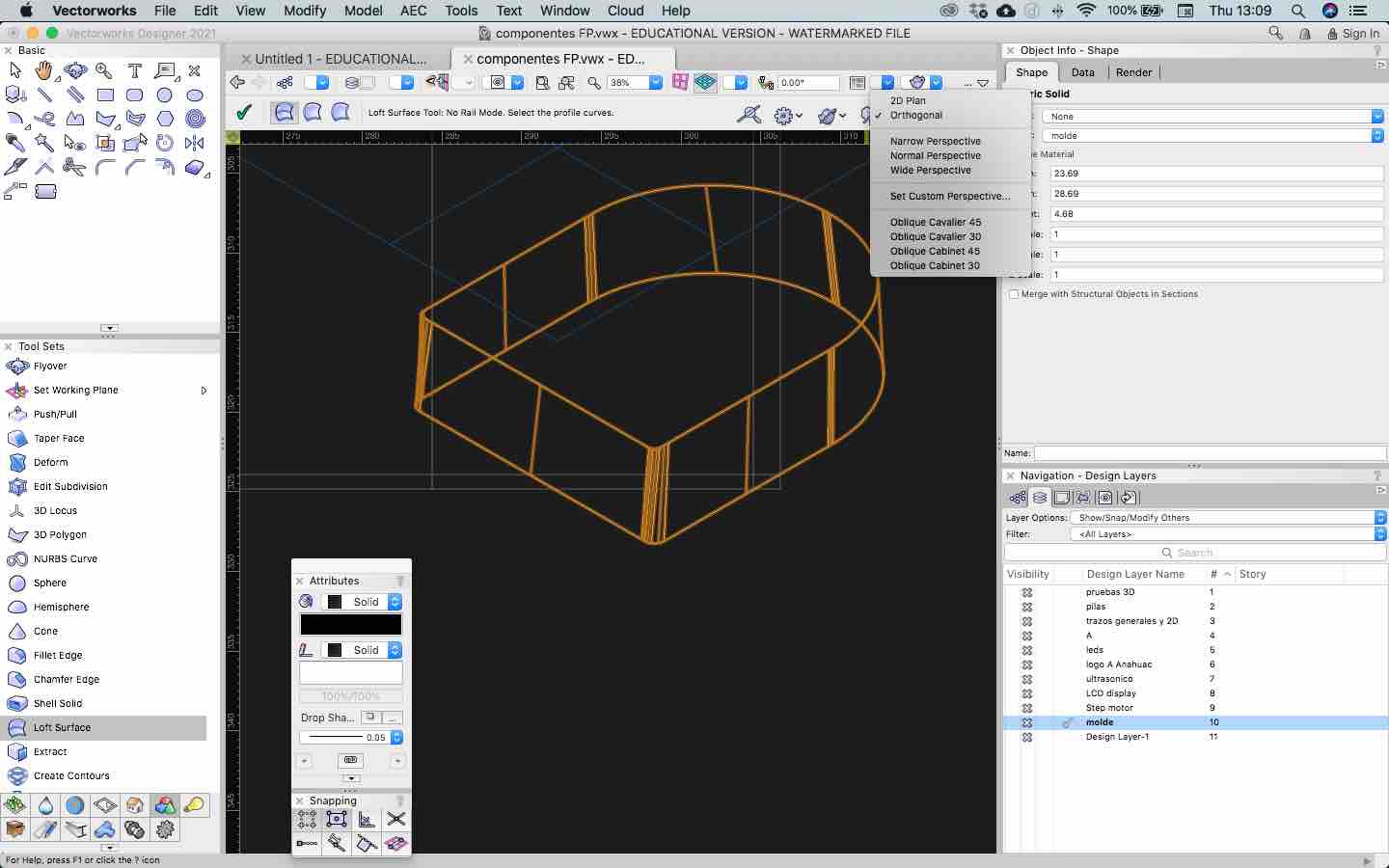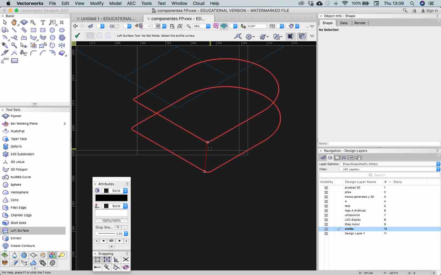 Rhino CAM, CNC router, band saw, vacuum machine.
