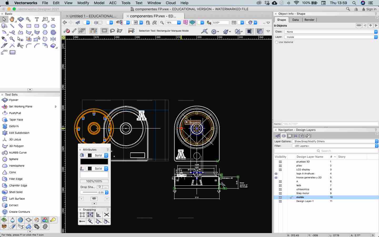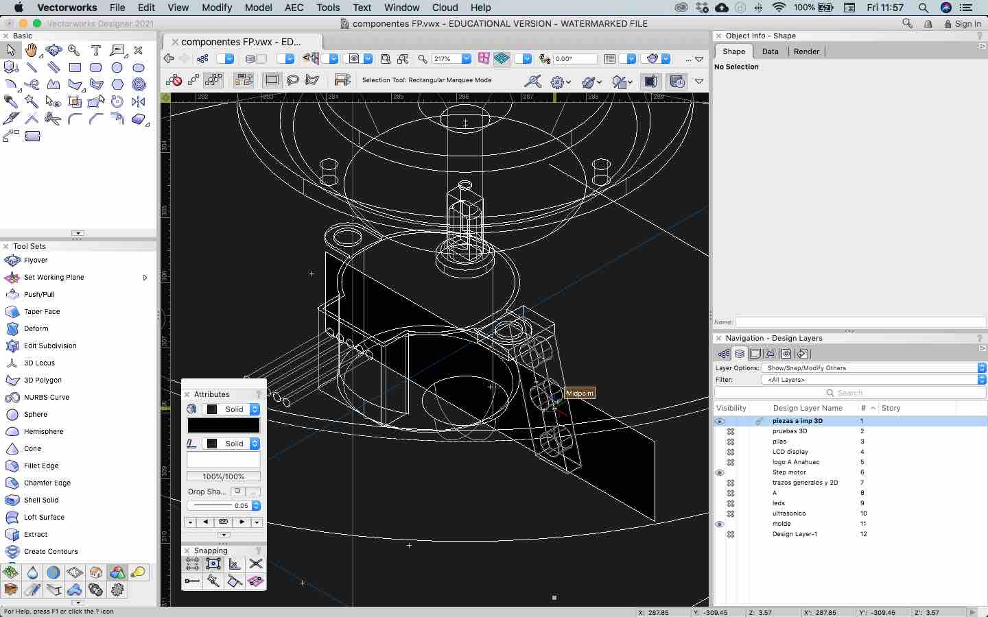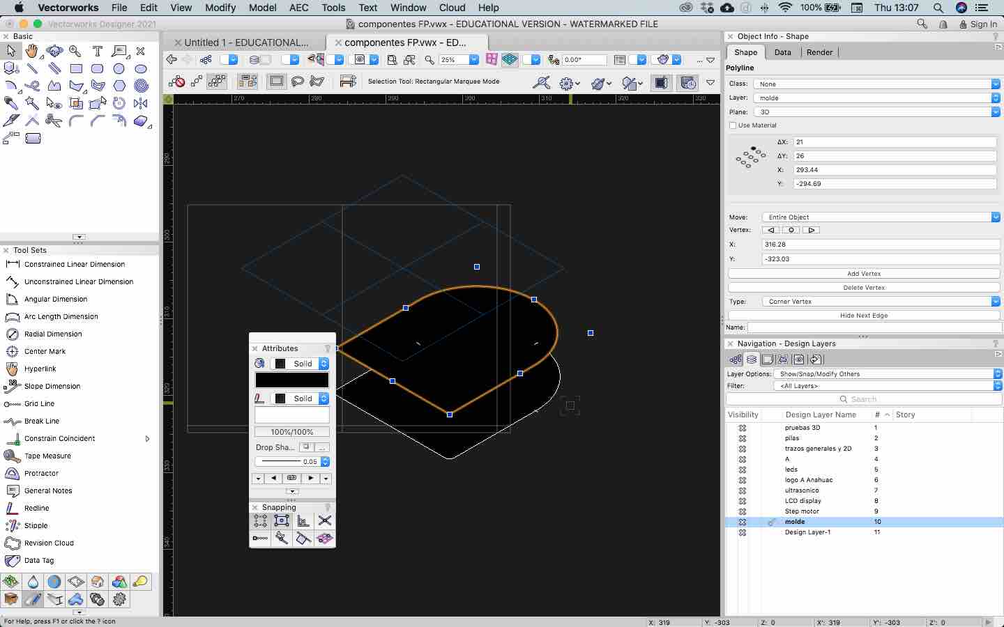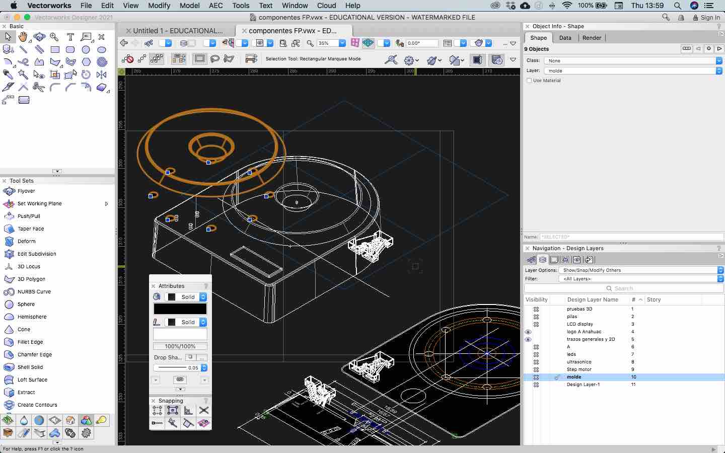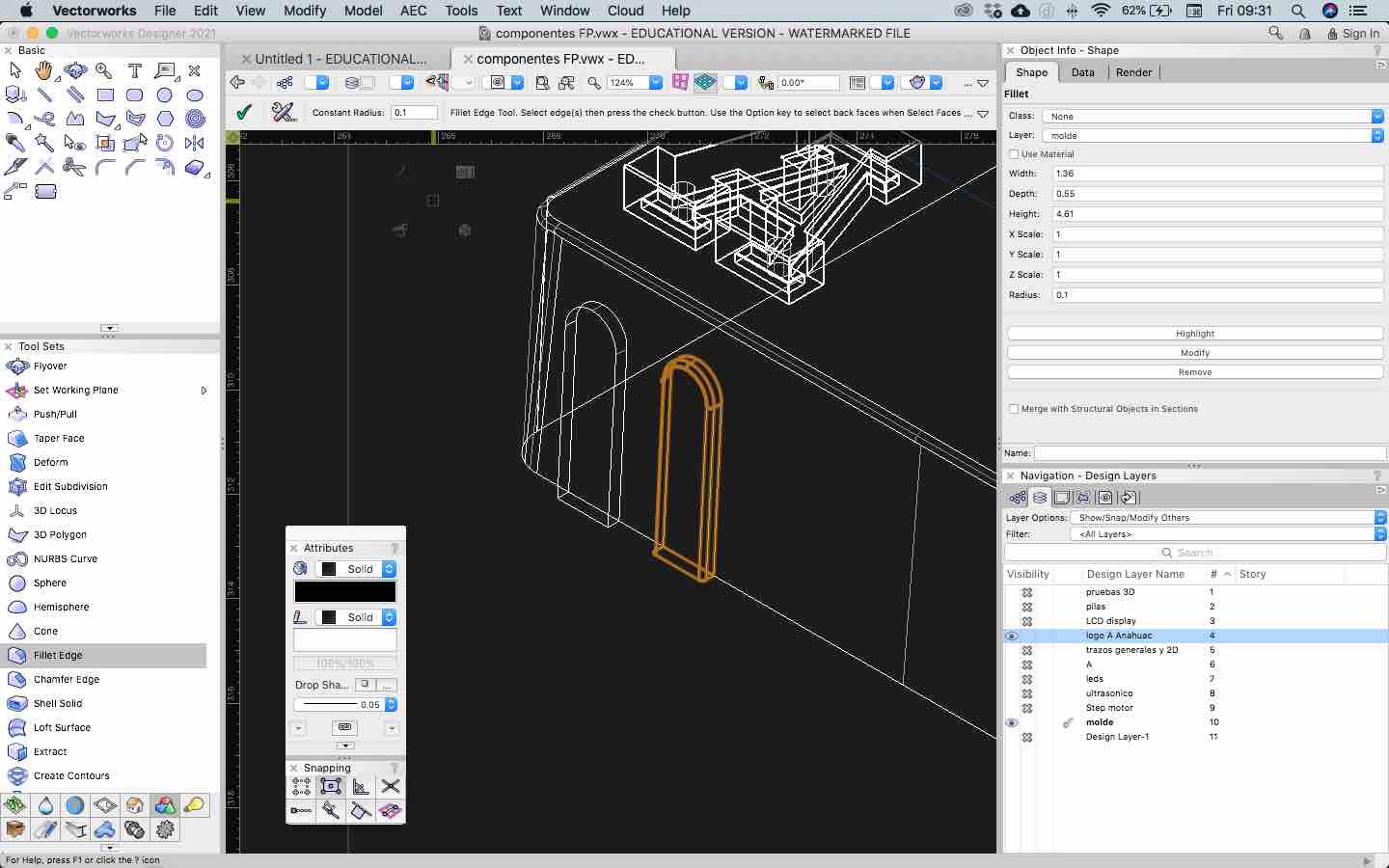 Rhino CAM, CNC router, band saw, vacuum machine.