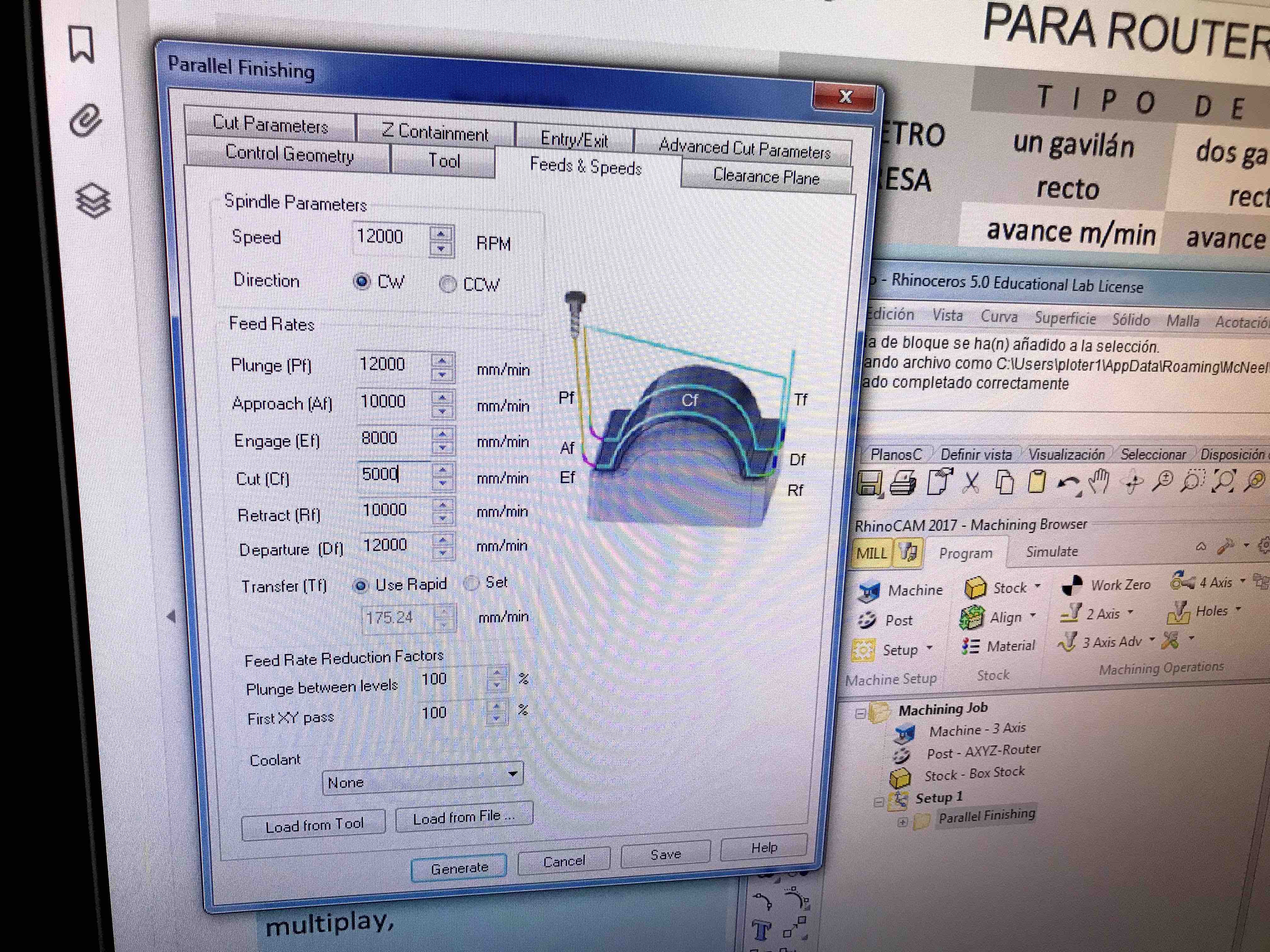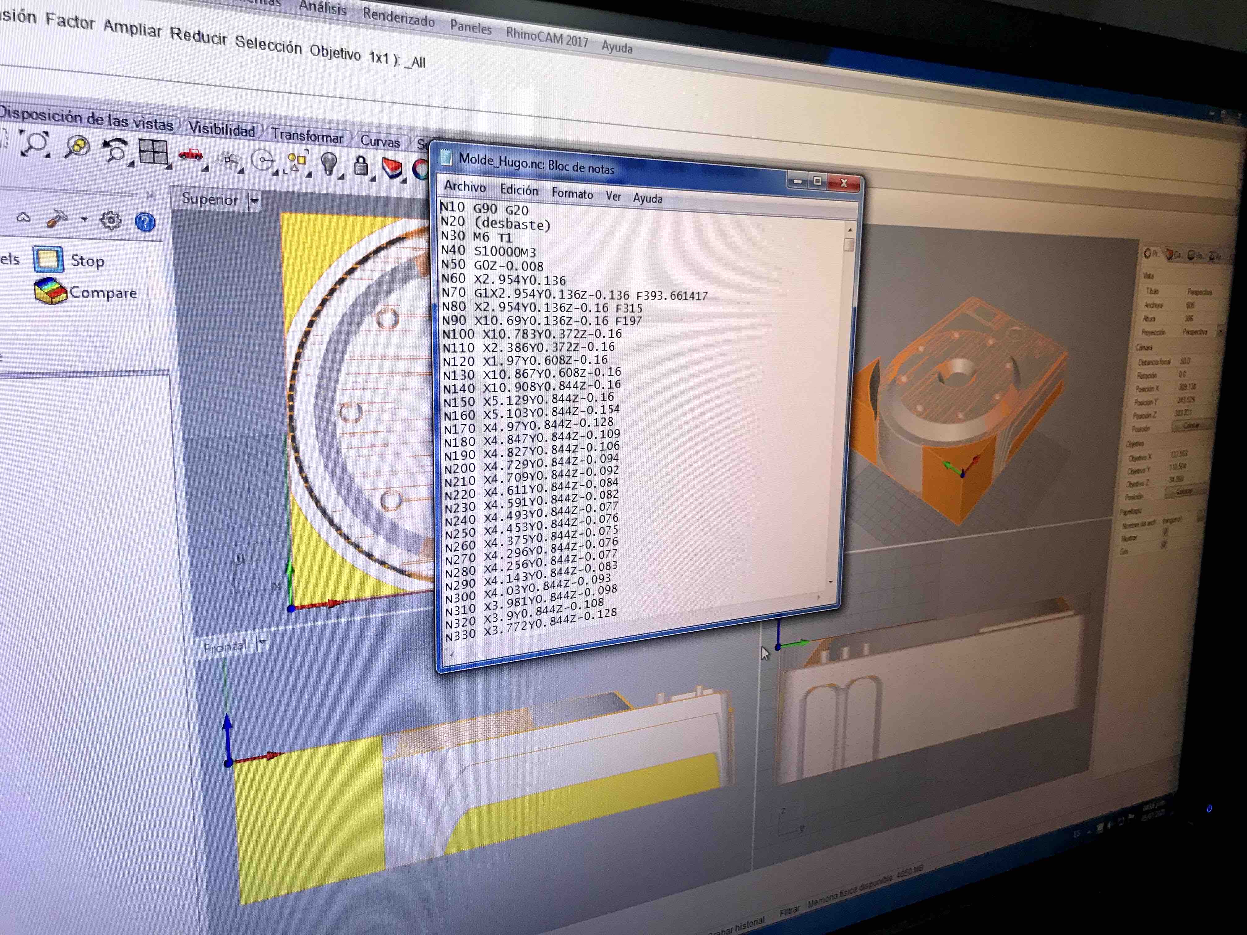 into the mold, RhinoCAM to setup the tooling and the CNC
