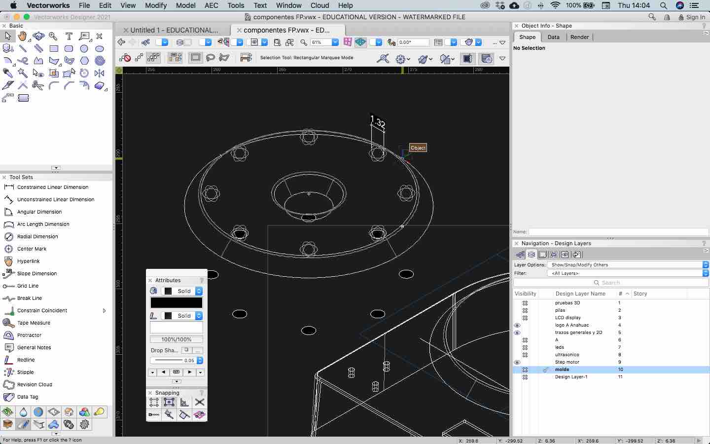 atached to the basic geometry the LCD rectangle, the pins of the A
