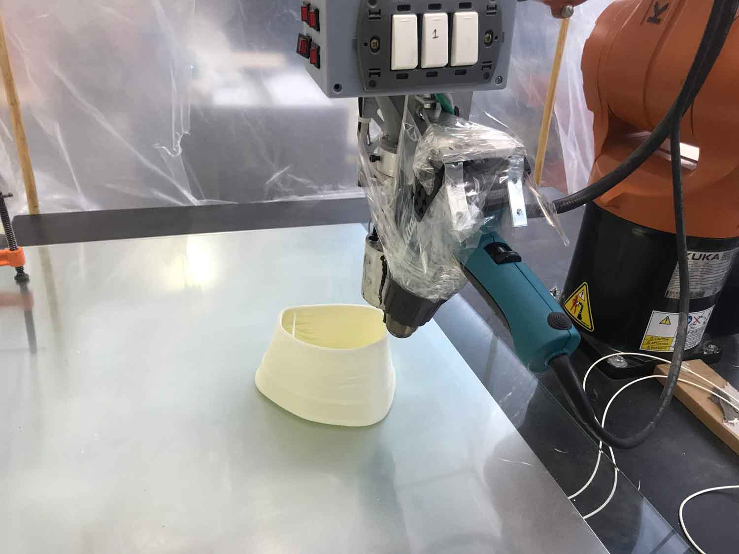 Then, Rodrigo Shiordia and Rafa offer me to use the KUKA robot so they can test some settings and I could get another 3D printed VASE......: