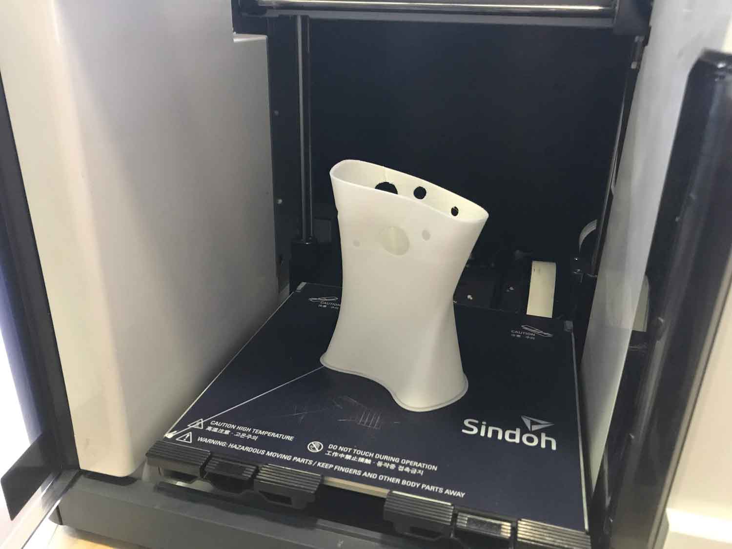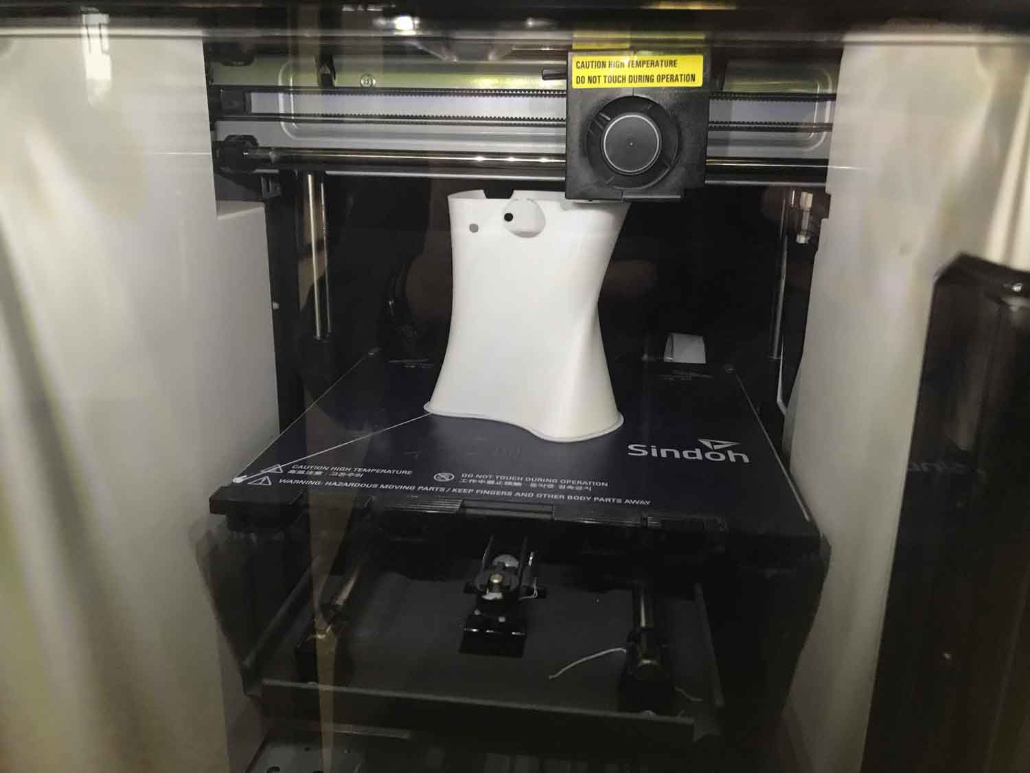 The final 3D printed piece. If we try to make it in a laser cut machine for example we need it to make in layers, and the result would be in a piece made with "steps" not a smooth surface, we need to glue al the pieces that could be a very fastidious work and we made it in a CNC router we can´t get the whole piece because of the limitations of the movements and of the limitations of the router bits reach.