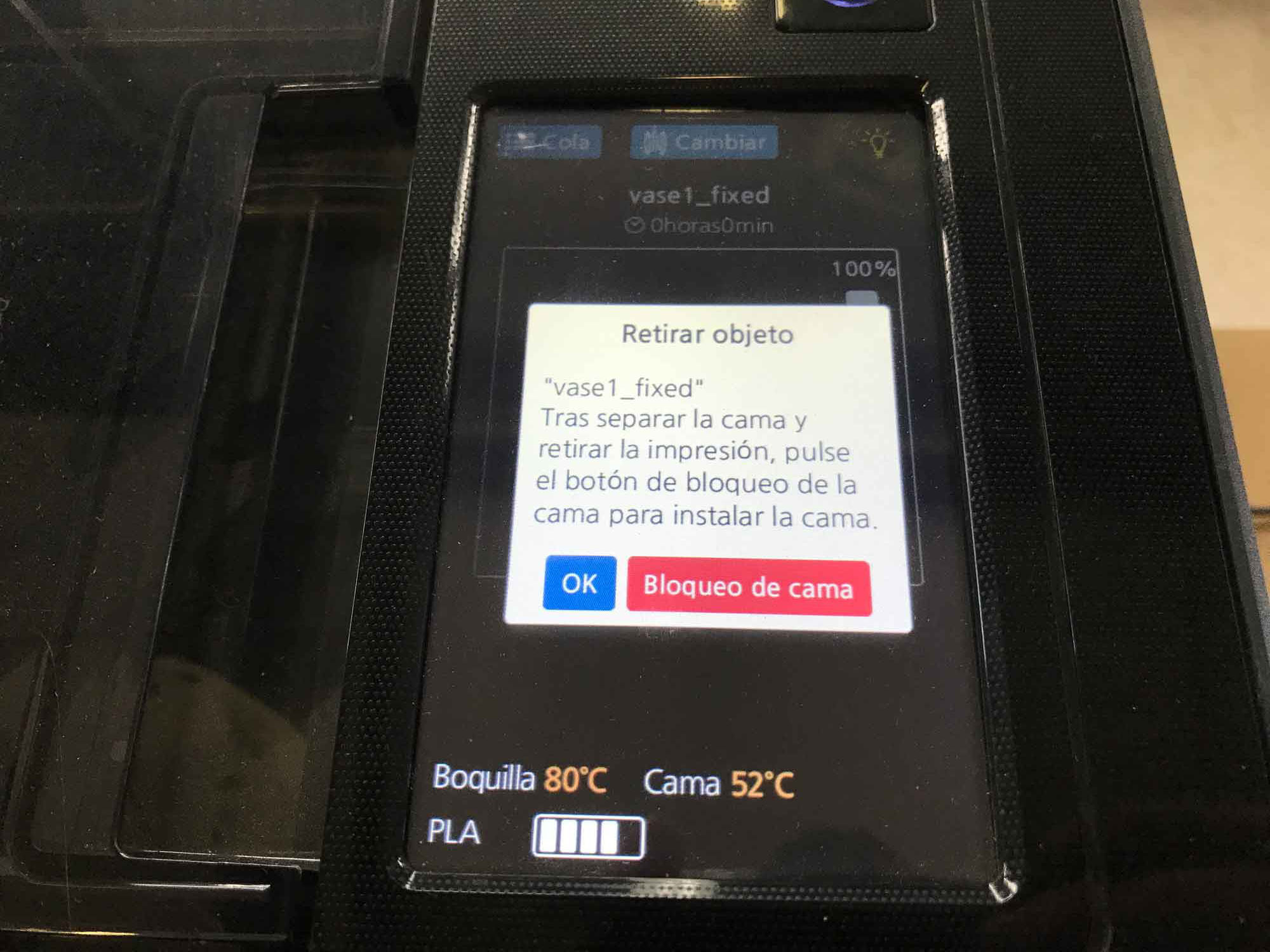 ready, it´s done, the 3D printer finished the work and we can take out the bed and retire the object