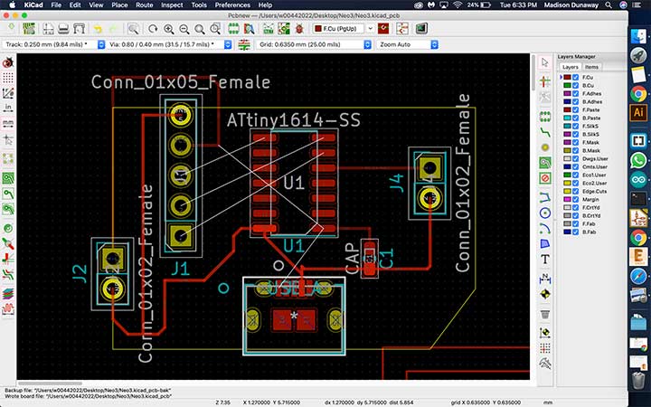 I chose to use KiCad instead of Eagle because it's open source and some peopl I know like it more than Eagle so I figured I'd give it a go since I'm not attached to Eagle yet. First, I will briefly describe the components I think I will need for this board and why.