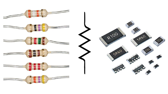 This is what some resistors look like. There are lots of different kinds of resistors. We use SMD (surface mounted devices) resistors. Different kinds of resistors have different ways of knowing what they are. This guide helped me better understand the ones we have been using in FabAcademy. Also the zig zag line is how they look in some diagrams.