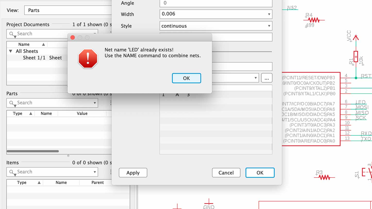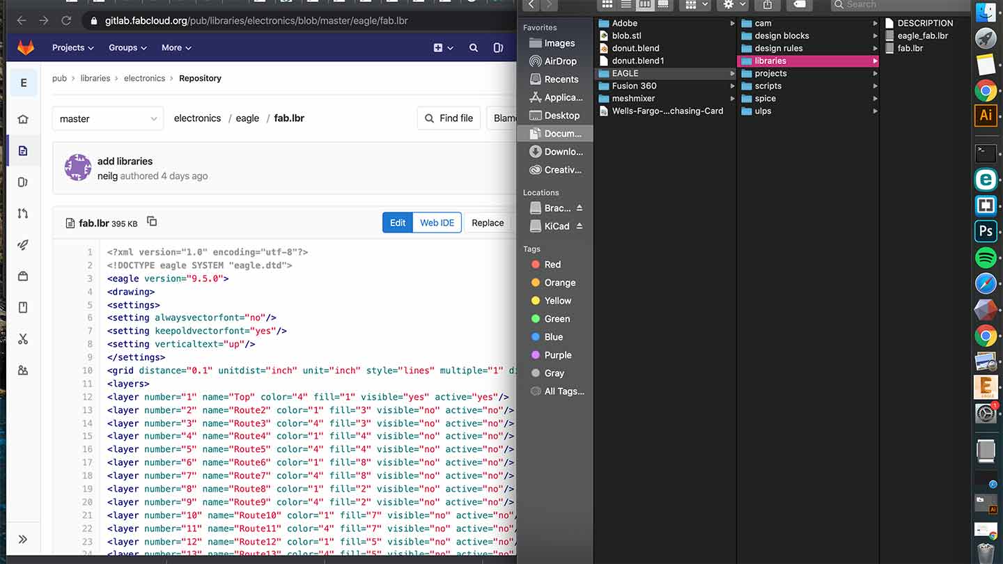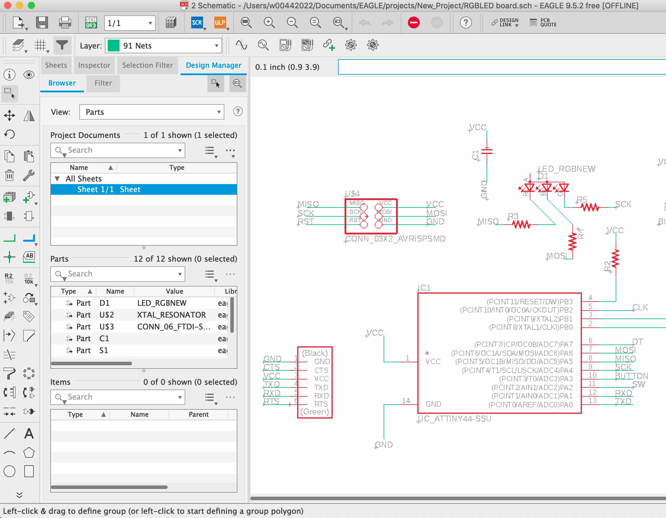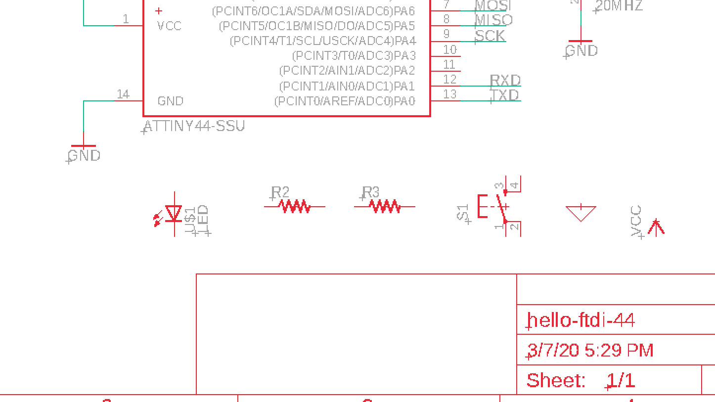 So the board I am trying to make will have a button and a light that is turned on and off by the button. Sounds super easy, right. Lies. To get started, because I was already using SparkFun, I continued with their tutorials and started cross referencing them with the FabAcademy one. I downloaded Eagle and then saved this schematic to my Eagle projects.